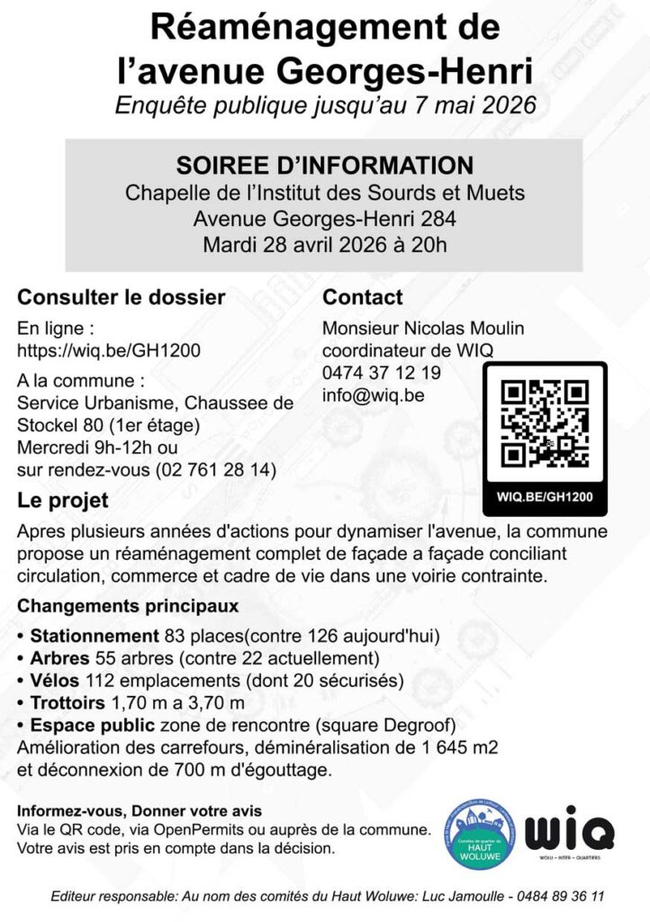 La commune de Woluwe-Saint-Lambert a lancé une enquête publique concernant le projet de réaménagement de l’avenue Georges Henri, entre le square Meudon et le boulevard Brand Whitlock.